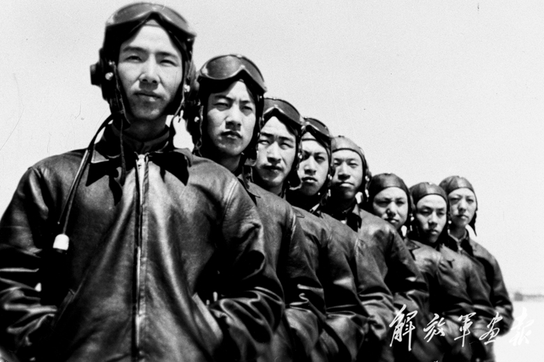 在抗美援朝戰(zhàn)場(chǎng)上,王海率領(lǐng)年輕的飛行大隊(duì),靠著敢于空中拼刺刀的血性,立下赫赫戰(zhàn)功。圖為當(dāng)年“英雄的王海大隊(duì)”官兵留影。(圖片來(lái)自本刊資料室)