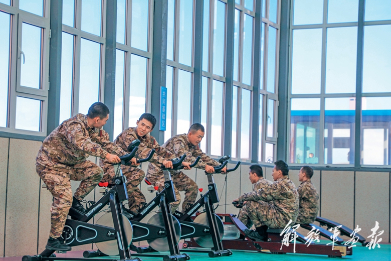 閑暇時間,官兵利用健身器材鍛煉身體。