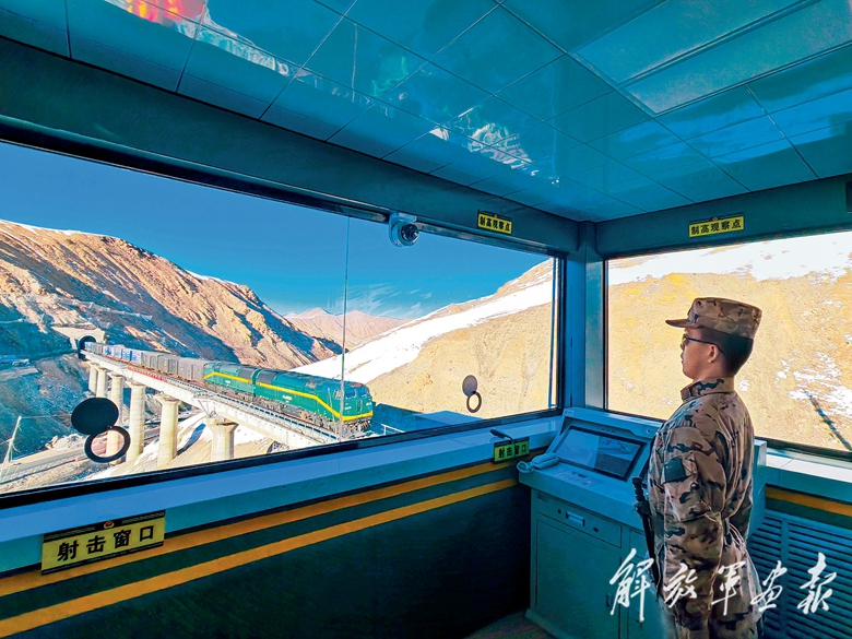 戰(zhàn)士在新改造的哨位上執(zhí)勤。