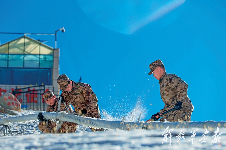 該大隊某哨所地處高海拔地區(qū),周邊地質結構復雜。多年來,吃水難題一直困擾官兵。哨所用水要靠運水車將水送到山下,再用滑軌車將水桶拉到垂直高度80多米的哨所。去年,解決哨所用水問題被武警青??傟犃腥搿芭摹鼻鍐危谲姷赜嘘P部門大力支持下,用時40天為哨所打出一口水井。通水那天,哨所一片歡騰,官兵激動不已,共同見證了這一難忘時刻。