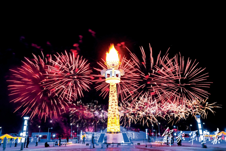 2月17日晚,第十四屆全國冬季運動會在內(nèi)蒙古自治區(qū)呼倫貝爾市開幕。圖為本屆冬運會主火炬在開幕式上熊熊燃起。