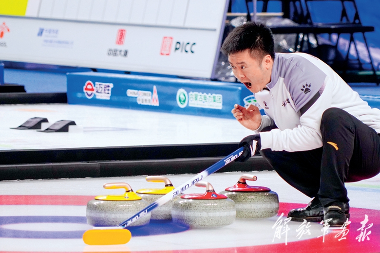2月26日,第十四屆全國冬季運動會冰壺項目公開組男子決賽在內(nèi)蒙古冰上運動訓(xùn)練中心冰球冰壺館舉行。圖為福建隊選手臧嘉亮在比賽中。