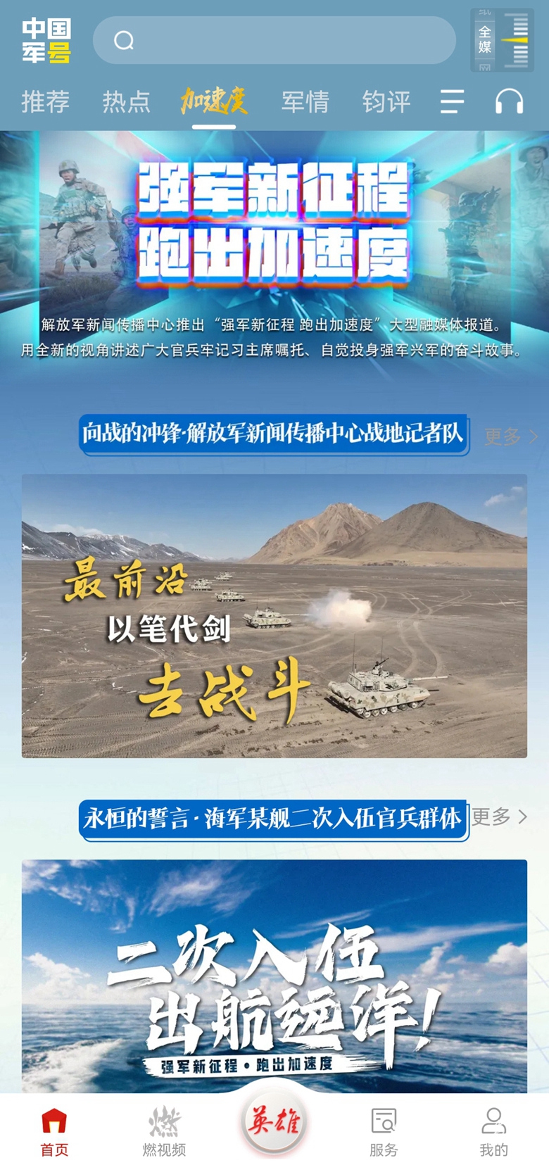 中國(guó)軍號(hào)“加速度”頻道首頁(yè)。