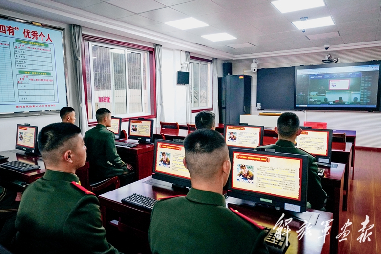 官兵利用“黔進號角”讀書平臺學習知識。