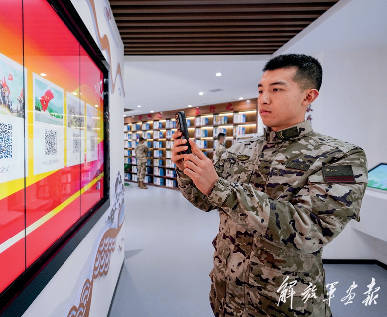 戰(zhàn)士掃描二維碼學習紅色歷史。
