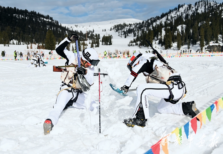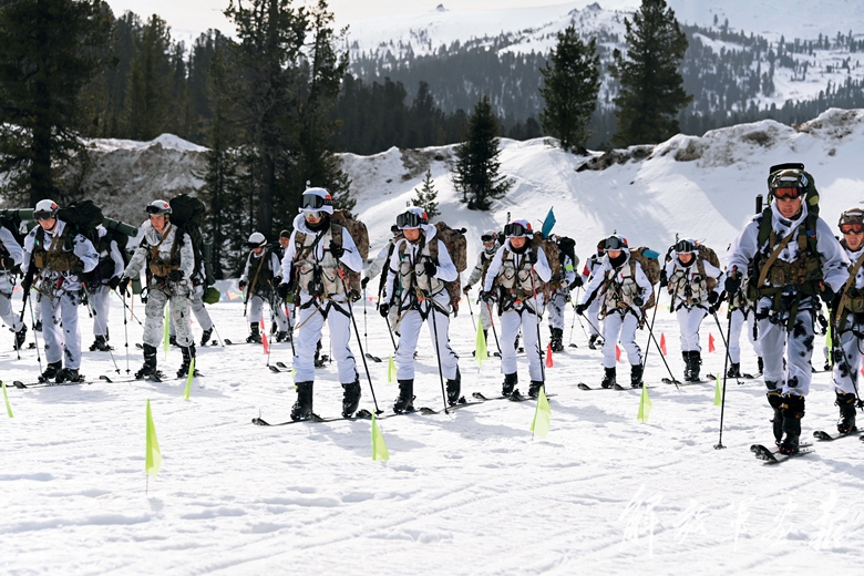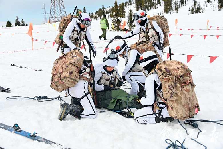 本次比賽歷時兩天一夜,來自7個國家的參賽隊(duì)圍繞雪崩搜救、傷員上送、班組射擊、定向越野和結(jié)伴滑雪等11個課目展開激烈比拼。比賽中,每名隊(duì)員平均負(fù)重35公斤,滑雪行軍需經(jīng)過6個調(diào)整點(diǎn),全程50余公里。