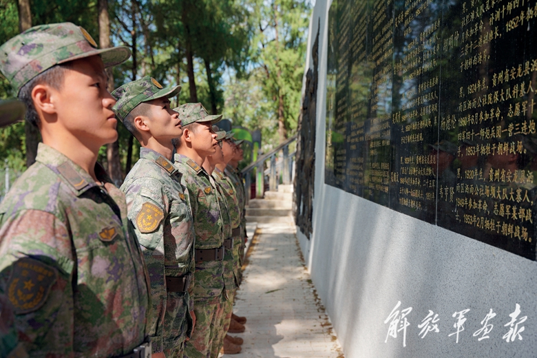 “英名墻”前,戰(zhàn)士們共同追思先烈豐功偉績(jī)。