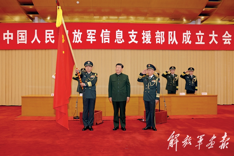 中國人民解放軍信息支援部隊(duì)成立大會(huì)4月19日在北京八一大樓隆重舉行。中共中央總書記、國家主席、中央軍委主席習(xí)近平向信息支援部隊(duì)授予軍旗并致訓(xùn)詞,代表黨中央和中央軍委向信息支援部隊(duì)全體官兵致以熱烈祝賀。他強(qiáng)調(diào),要貫徹新時(shí)代強(qiáng)軍思想,貫徹新時(shí)代軍事戰(zhàn)略方針,堅(jiān)持政治建軍、改革強(qiáng)軍、科技強(qiáng)軍、人才強(qiáng)軍、依法治軍,聚焦備戰(zhàn)打仗,按照體系融合、全域支撐的戰(zhàn)略要求,銳意進(jìn)取,扎實(shí)工作,努力建設(shè)一支強(qiáng)大的現(xiàn)代化信息支援部隊(duì)。