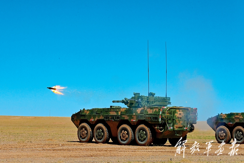 步戰(zhàn)車射擊,打擊“敵”目標(biāo)。