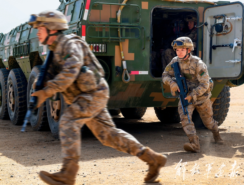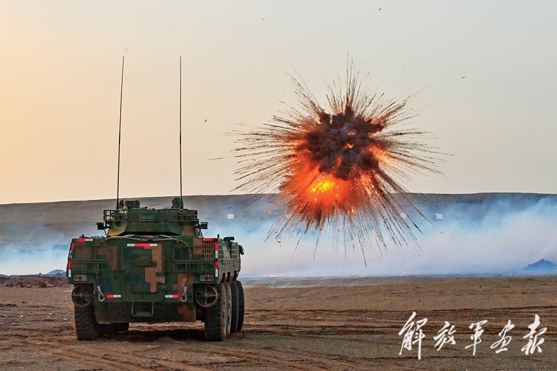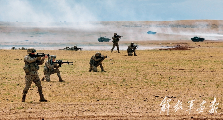 “釋放發(fā)煙彈!”指揮員結(jié)合現(xiàn)場環(huán)境下達(dá)指令。發(fā)煙彈在空中爆開。借著煙幕掩護(hù),步戰(zhàn)車抵近目標(biāo)地域。官兵快速下車,依托地形,采取多種姿勢對不同距離的目標(biāo)進(jìn)行射擊。猛烈的火力打擊后,目標(biāo)悉數(shù)被摧毀。