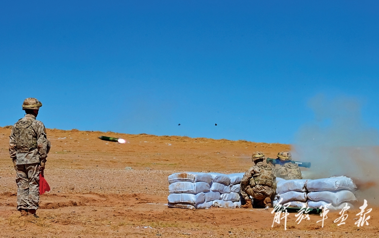 “各車注意,正前方‘?dāng)场锉ぃ瑲灉?!”接到指令后,突擊車組迅速前出,占領(lǐng)發(fā)射陣地。裝填炮彈、搜索目標(biāo)、瞄準(zhǔn)擊發(fā)……官兵熟練操作、密切配合,動作一氣呵成。炮彈拖曳尾焰破膛而出,將“敵”碉堡精準(zhǔn)摧毀。