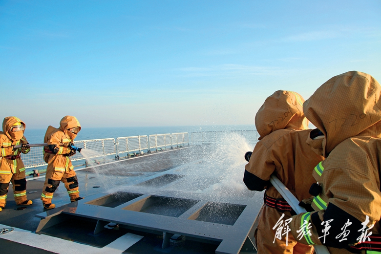 “左舷‘中彈’!”演練中,某艦遭遇“險情”。該艦立即調(diào)整航向,組織力量搶救“傷員”。與此同時,編隊指揮員命令各艦調(diào)整艦位艦姿,展開支援行動。臨近艦艇迅速向“受損”艦艇機動,開啟消防水炮對艙面“起火”部位實施滅火。