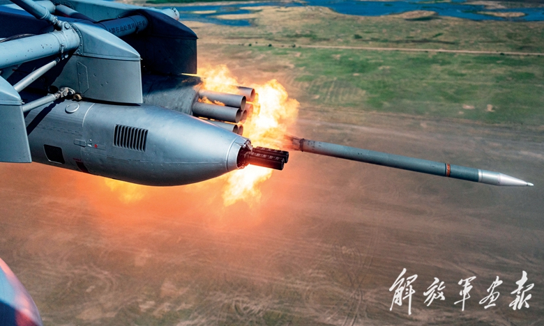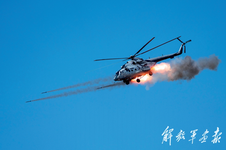經(jīng)過低空隱蔽飛行,直升機(jī)接近預(yù)定空域。機(jī)長緊握操縱桿,不斷調(diào)整飛行姿態(tài),在機(jī)組成員密切配合下實(shí)施低空偵察,快速搜索識別靶標(biāo)并建立最佳攻擊航線。領(lǐng)航員不斷通報航行諸元,機(jī)長根據(jù)引導(dǎo)精準(zhǔn)鎖定目標(biāo)。霎時,一枚枚火箭彈呼嘯而出直撲地面,靶標(biāo)處火光四射、硝煙彌漫。