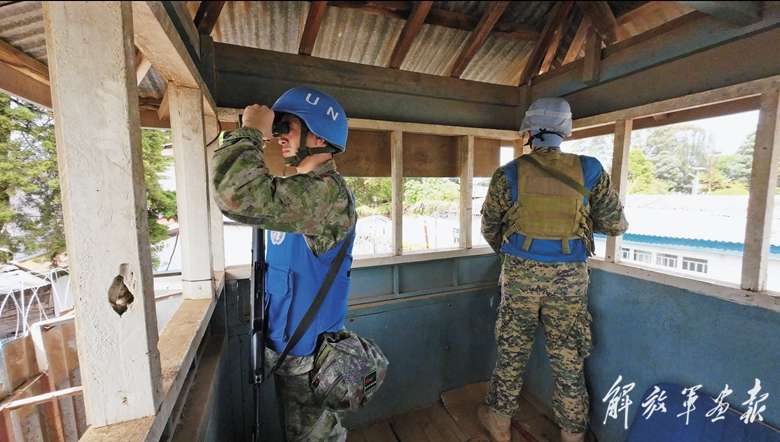 針對地區(qū)復(fù)雜局勢,中國第27批赴剛果(金)維和官兵與聯(lián)剛團(tuán)南戰(zhàn)區(qū)埃及警察營開展聯(lián)合警戒。(攝影/霍亞雄)