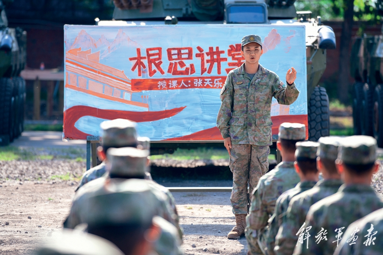 戰(zhàn)士在“根思講堂”上分享強(qiáng)軍故事。(攝影/季 鵬)