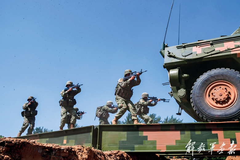 進(jìn)攻戰(zhàn)斗訓(xùn)練中,官兵快速下車。