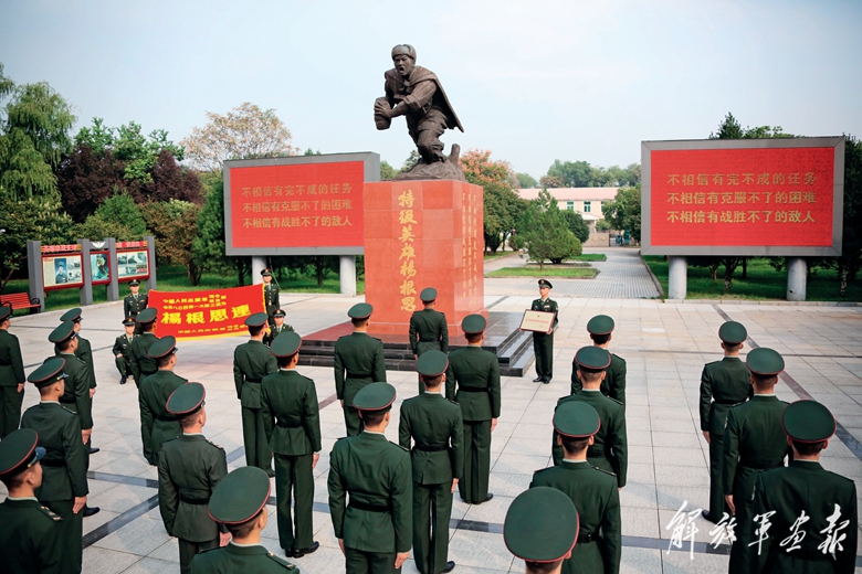 該連指導(dǎo)員介紹,連隊(duì)注重用充滿儀式感的傳統(tǒng)教育播撒英雄火種:在新兵下連、官兵調(diào)入等時(shí)機(jī)舉行入連儀式,學(xué)連史、唱連歌、喊連魂,授榮譽(yù)編號(hào)、建榮譽(yù)檔案;任務(wù)出征前組織集體宣誓,官兵在老連長(zhǎng)雕像前整裝列隊(duì),打起連旗作動(dòng)員、表決心;載譽(yù)歸來后開展報(bào)告儀式,面向老連長(zhǎng)雕像匯報(bào)喜訊,為先進(jìn)個(gè)人戴紅花、掛獎(jiǎng)?wù)隆看蝺x式活動(dòng),都是官兵與老連長(zhǎng)跨越時(shí)空的對(duì)話,英雄精神的種子在他們內(nèi)心深處悄然生發(fā)。