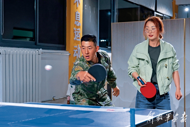 不多時(shí),盧時(shí)芳的丈夫、一級(jí)上士王俊杰結(jié)束了一天的工作,也來到生活服務(wù)中心陪伴家人。