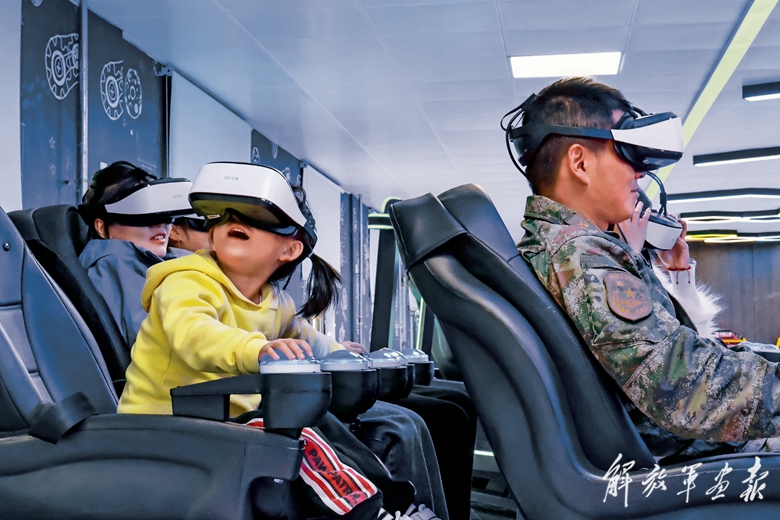 該旅官兵帶著家人體驗(yàn)VR模擬設(shè)備。