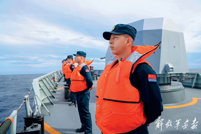 參加中越北部灣聯(lián)合巡邏的中方任務(wù)官兵整齊列隊。