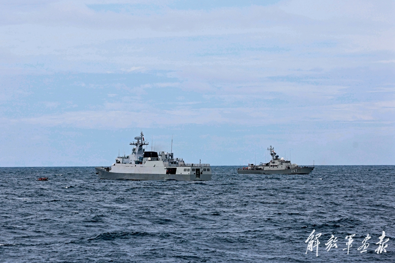 聯(lián)合巡邏期間,雙方艦艇編隊加強海上通信聯(lián)絡(luò)和資源共享交流,不時相互通報海區(qū)水文氣象、??涨闆r、編隊航向航速等信息,提高了聯(lián)合巡邏協(xié)同水平。雙方還組織了聯(lián)合搜救、燈光信號訓(xùn)練。