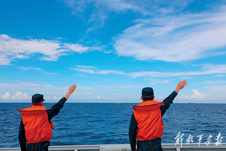中越北部灣聯(lián)合巡邏結(jié)束,中方任務(wù)官兵向越方揮手告別。