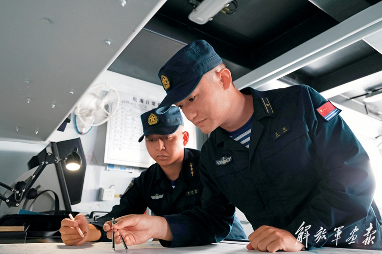 聯(lián)合搜救訓(xùn)練期間,中方任務(wù)官兵制訂搜索方案。