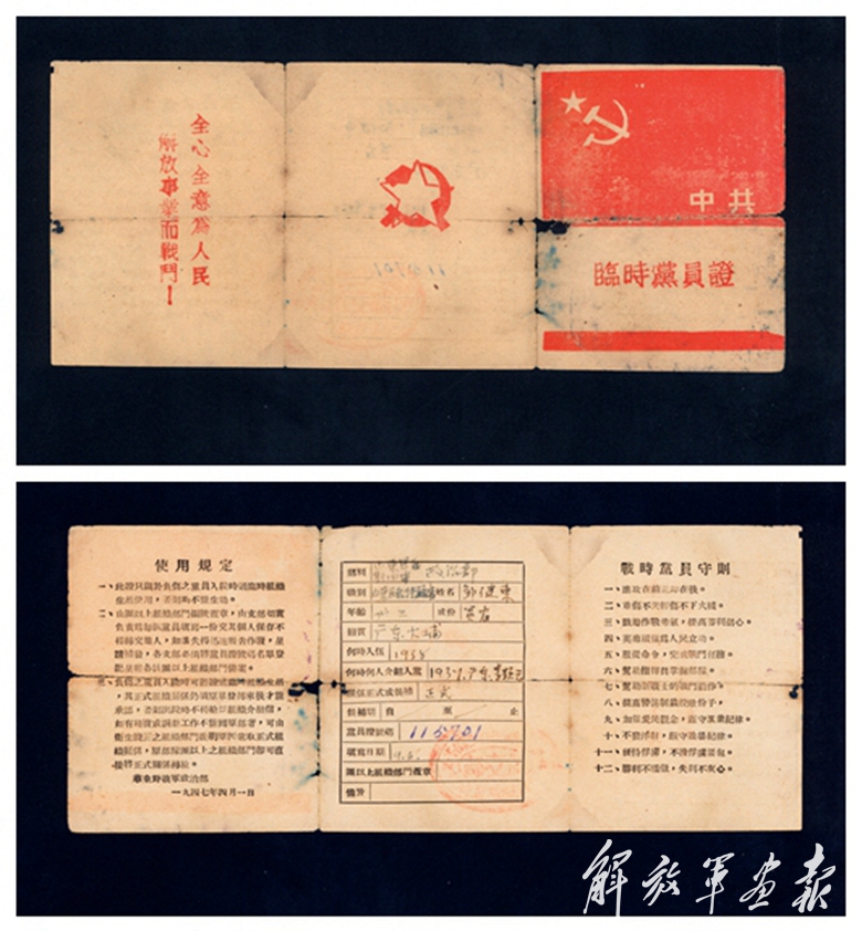 鄒健東下部隊采訪時使用的臨時黨員證。