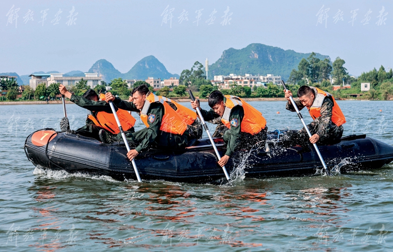 參訓(xùn)隊(duì)員進(jìn)行操舟課目訓(xùn)練。