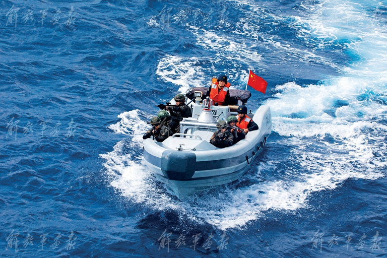中坦海軍官兵乘坐小艇前出查驗(yàn)“商船”。(攝影/崔曉洋)