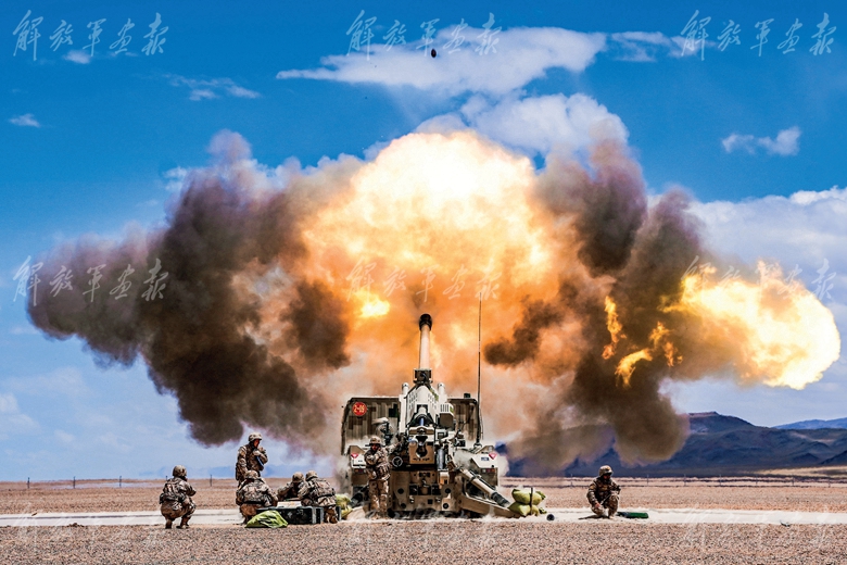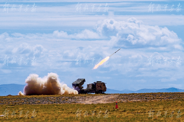 抵達(dá)目標(biāo)地域后,官兵迅速占領(lǐng)發(fā)射陣地,指揮員、駕駛員、炮兵組密切合作,依據(jù)回傳的“敵”坐標(biāo)信息配置射擊諸元,并裝填彈藥?!邦A(yù)備,放!”隨著射擊口令下達(dá),各炮位采取多彈種、多梯次方式,對“敵”實施精確火力打擊,一枚枚炮彈呼嘯出膛、直撲目標(biāo)。霎時間,演訓(xùn)場上炮火飛揚、硝煙四起。