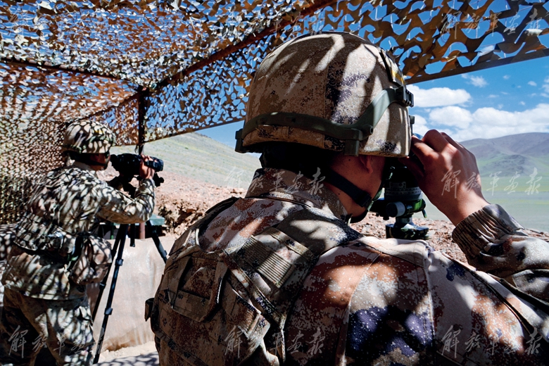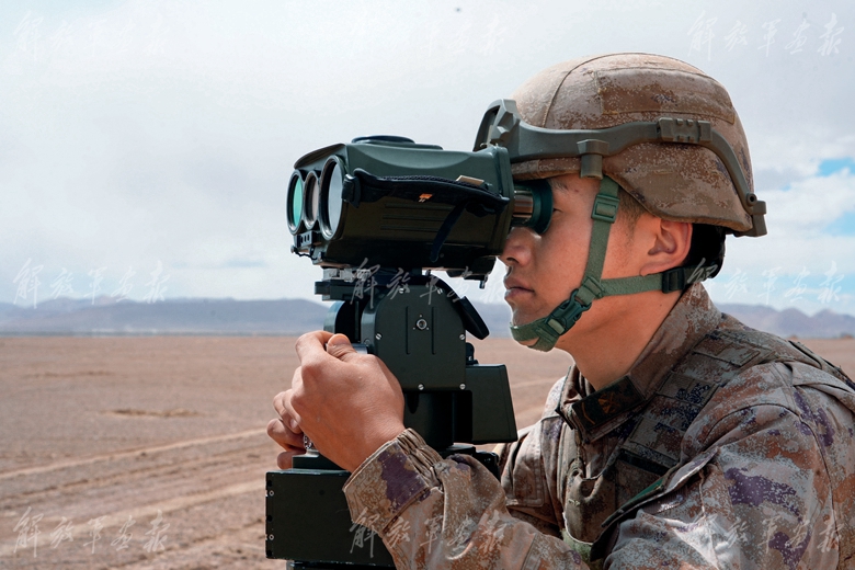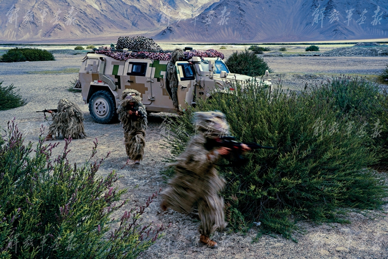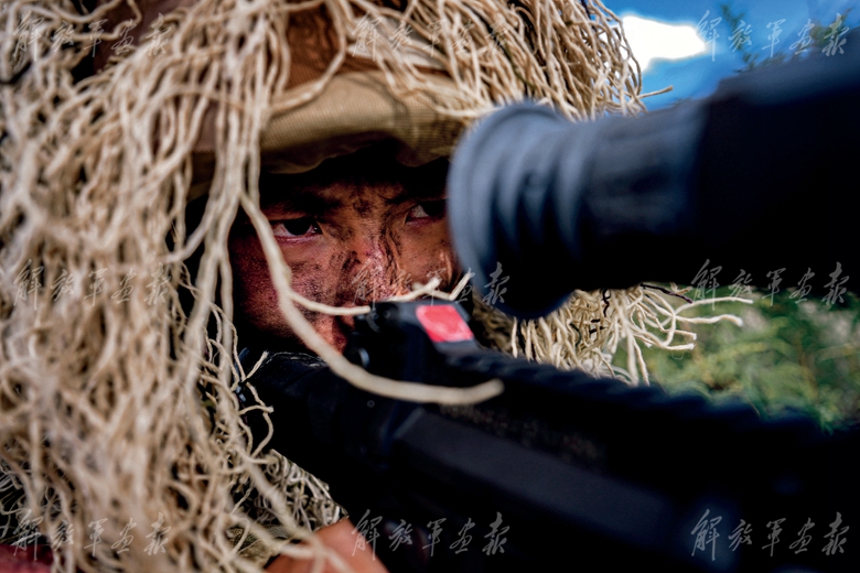 偵察兵隱蔽滲透,對“敵”目標(biāo)實施偵察。