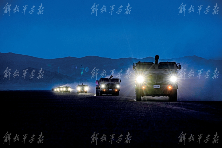 夜幕下,炮兵分隊轉(zhuǎn)移陣地。