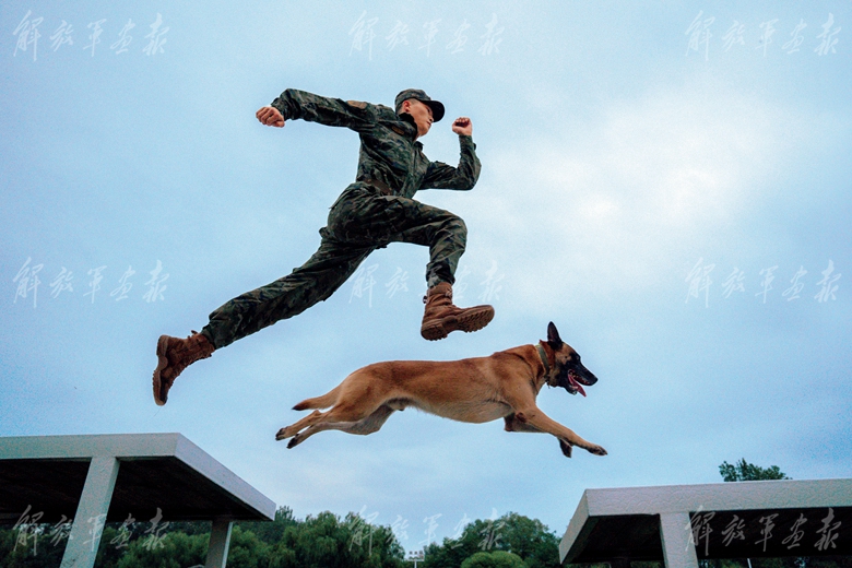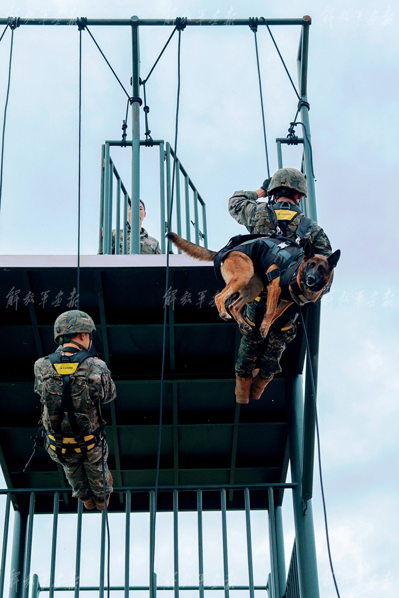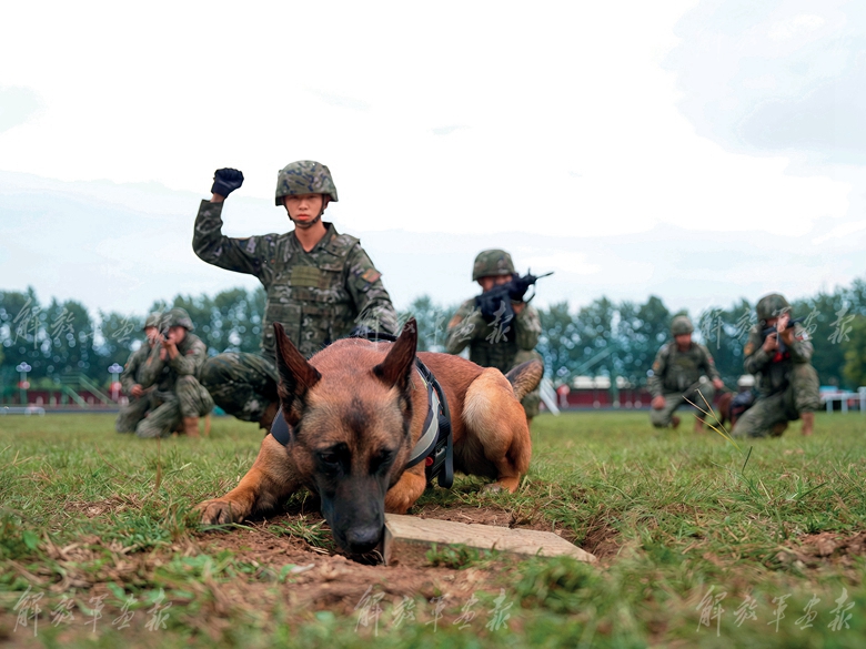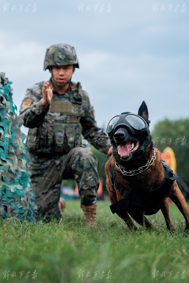 軍犬接到指令,迅猛出擊,開展偵察搜索任務(wù)。