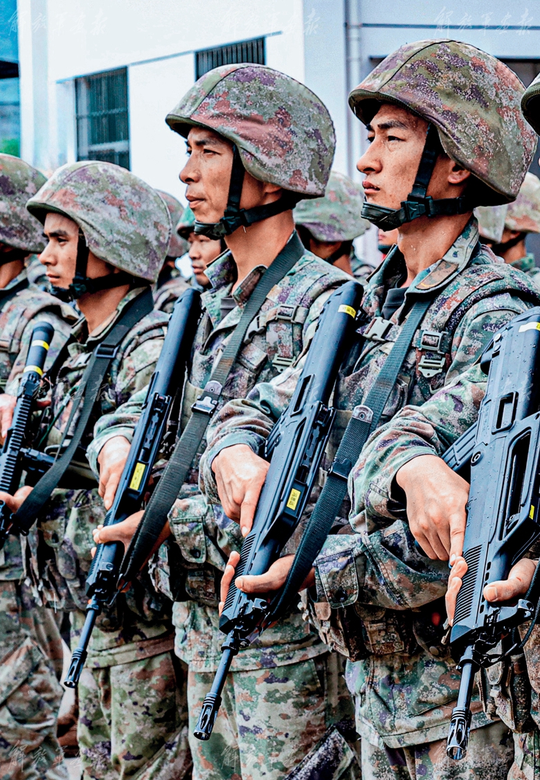 連隊二級上士蔡明月(中)10年來,牢記統(tǒng)帥囑托、矢志精武強能,在各項任務中當先鋒、打頭陣。