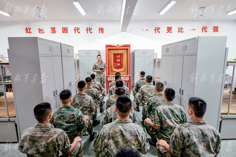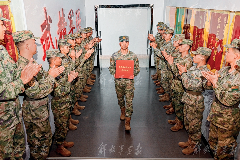 榮譽,是歷史的記憶,也是精神的承載。在四連,每年新兵下連,第一個課堂就設在榮譽室,第一堂課就是連隊光榮傳統(tǒng)課,在“兵之初”就播下“紅色火種”,將紅色基因深植官兵靈魂血脈中。10年來,連隊持續(xù)豐富“榮譽相冊”,不斷續(xù)寫“紅色班譜”,發(fā)揮紅色傳家寶的教育作用,舉辦“話說連史”講壇,成立紅色宣講隊……奔赴演訓場前,他們隆重舉行誓師動員儀式,開展挑應戰(zhàn)、表決心等活動;演訓任務間隙,他們組織訓法辯論賽、強軍故事會……忠誠和信仰在官兵心里牢牢扎根,獻身強軍事業(yè)的精神動力逐漸充盈。