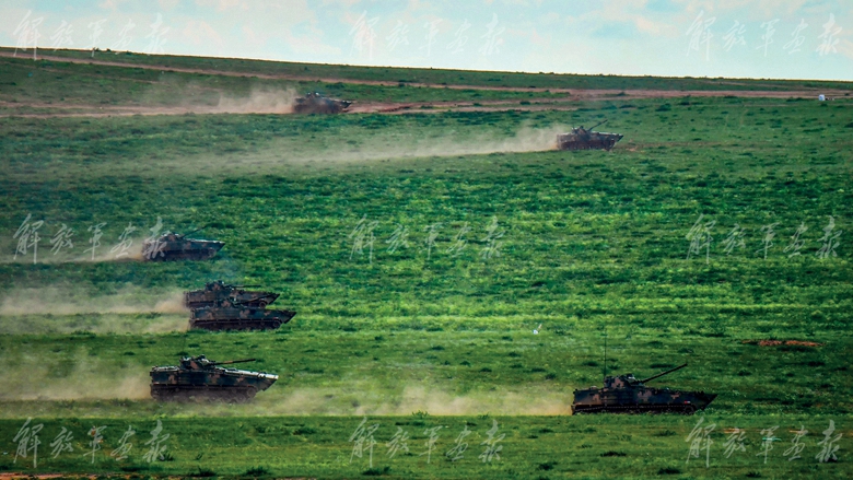 2021年6月,四連官兵在草原上開展步戰(zhàn)協(xié)同訓練。