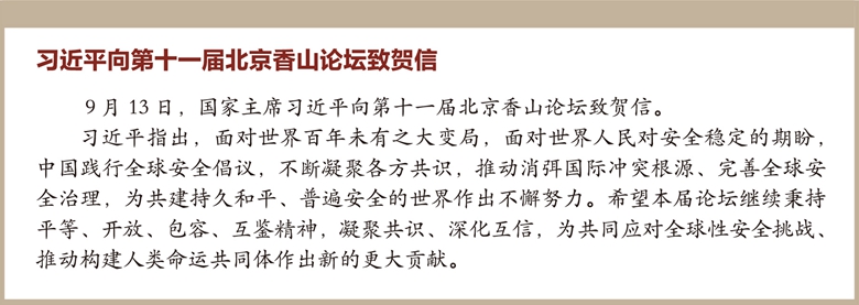 9月12日,第十一屆北京香山論壇舉辦“高端訪談”專題研討會,與會嘉賓圍繞“全球安全倡議”議題進行研討。