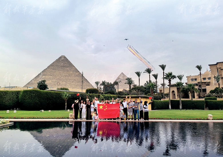 中國空軍任務機組飛越金字塔,為中埃兩國友誼留下歷史見證。