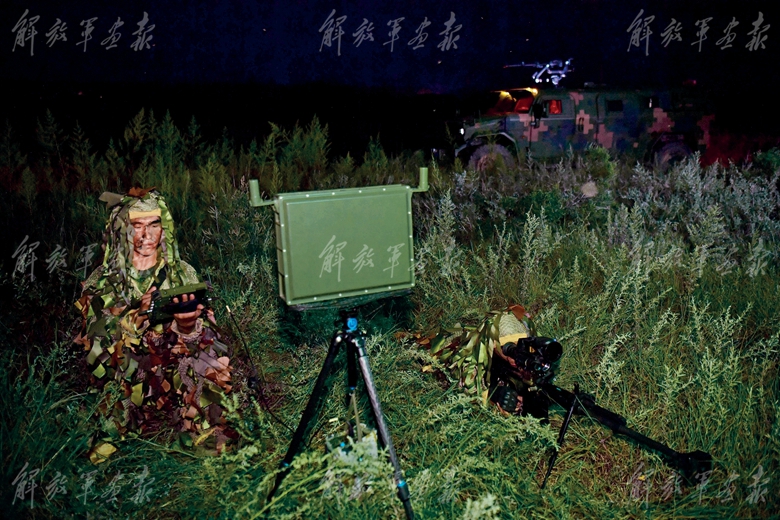 此時已夜幕沉沉,偵察隊員迅速展開破襲行動。觀察組利用單兵雷達,偵察目標(biāo)區(qū)域地形和“敵”兵力配屬,突擊組借助地形掩護,向“敵”指揮所快速逼近,最終成功摧毀“敵”目標(biāo)。