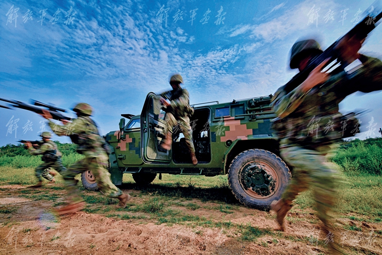 “迅速下車,搜索前進!”到達預(yù)定點位后,指揮員一聲令下,各偵察小組立即收攏人員、偽裝車輛,由機動行軍改為徒步前進。