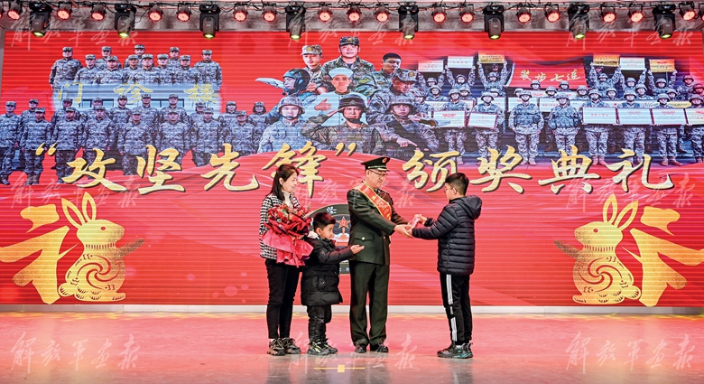 家屬受邀與軍人一起登臺領(lǐng)獎,共享榮光。