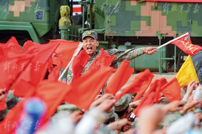 把舞臺搭在演訓(xùn)場,把歌聲送到最前線。伴隨著激昂的音樂,文藝輕騎隊(duì)?wèi)?zhàn)地慰問演出在開場舞《青春戰(zhàn)歌》中拉開帷幕,瞬間點(diǎn)燃全場。沒有炫彩的燈光,但有官兵熱烈的目光;沒有華麗的舞美,卻有戰(zhàn)味十足的真實(shí)背景??犊ぐ旱暮铣?、幽默詼諧的小品、剛?cè)岵?jì)的舞蹈……兵寫兵、兵演兵、兵唱兵,隊(duì)員們創(chuàng)作演出接地氣、冒熱氣的精彩作品,獲得官兵強(qiáng)烈共鳴,為高強(qiáng)度、快節(jié)奏的駐訓(xùn)生活增加許多色彩,有力提振了部隊(duì)士氣,激發(fā)了官兵練兵備戰(zhàn)的熱情。