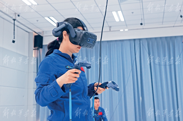 神舟十九號(hào)航天員王浩澤進(jìn)行虛擬現(xiàn)實(shí)出艙訓(xùn)練。(攝影/徐 部)