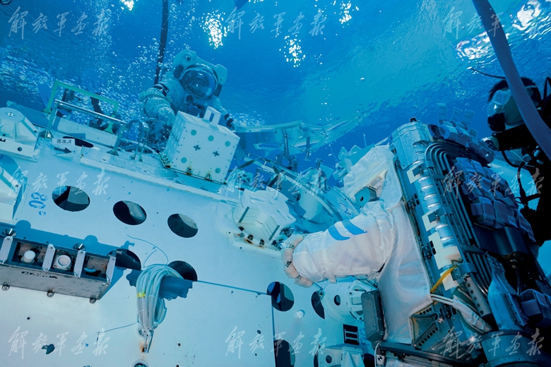 神舟十九號(hào)航天員蔡旭哲進(jìn)行水下訓(xùn)練。(攝影/孔方舟)
