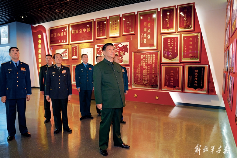 11月4日,中共中央總書記、國家主席、中央軍委主席習近平到空降兵軍視察。這是習近平參觀空降兵軍軍史館。