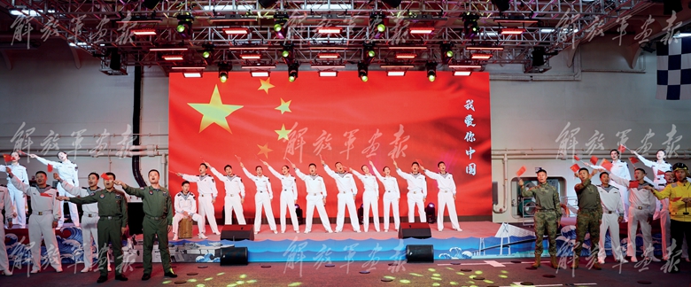 11月21日,在香港訪問的海軍艦艇編隊在海南艦舉行甲板招待會。圖為編隊官兵表演文藝節(jié)目。(攝影/周 宇)
