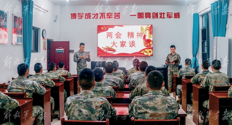 全國(guó)兩會(huì)期間,南部戰(zhàn)區(qū)海軍某團(tuán)組織“兩會(huì)精神大家談”活動(dòng)。(攝影/洪瀚諾)