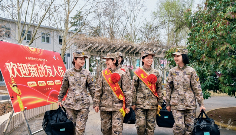 3月16日,火箭軍某部迎接2024年春季入伍新戰(zhàn)士。(攝影/陳世鋒)