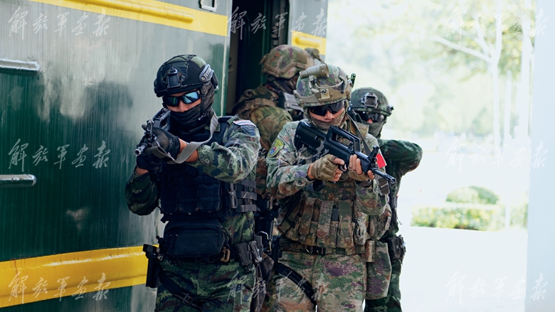 11月26日,中國(guó)和新加坡“合作-2024”陸軍聯(lián)合訓(xùn)練在河南某訓(xùn)練基地舉行。圖為雙方參訓(xùn)隊(duì)員進(jìn)行訓(xùn)練。(攝影/姜正旺)